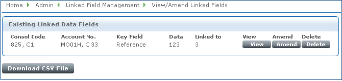 Providing that the Key Field/Data combination is used once only per account, the same Link To/Data combinations can be re-used as many times as required in the same account or multiple accounts. Individual sets of links can be amended/deleted by administrators who have adequate account/consol code permissions